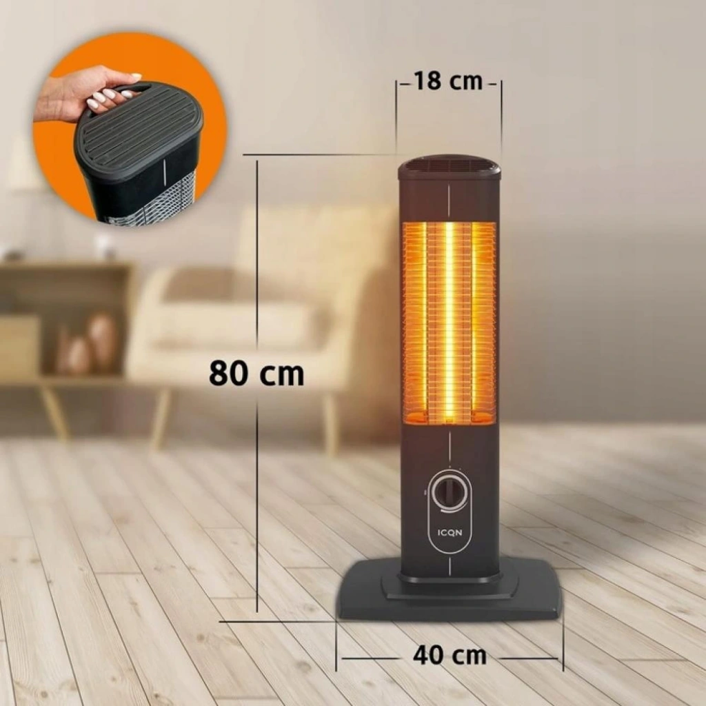 • Ürün özellikleri: Ayaklı radyant ısıtıcı terasta, kış bahçesinde, bodrumda, garajda, balkonda, atölyede, garajda ve kampta kullanım için idealdir, devrilmeye karşı koruma sağlar.