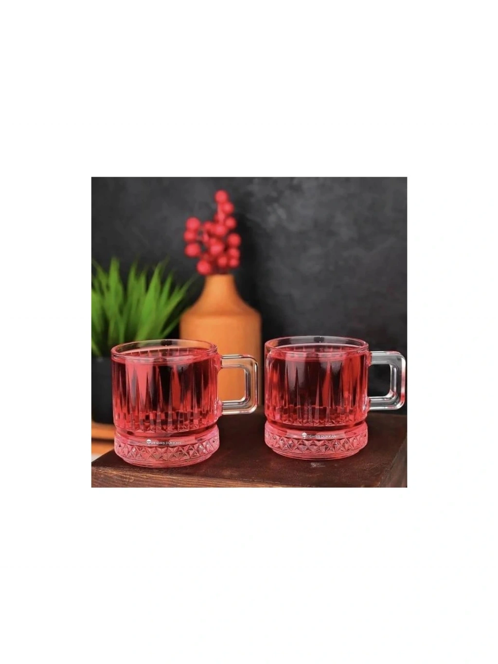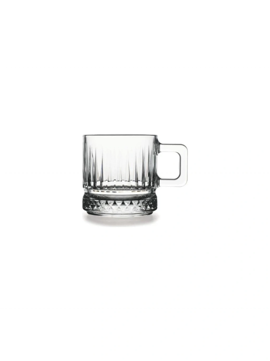 Elysia 2'li kulplu bardak seti, modern geometrik tasarımıyla dikkat çekerken, cam materyali sayesinde şeffaf ve estetik bir görünüm sunar