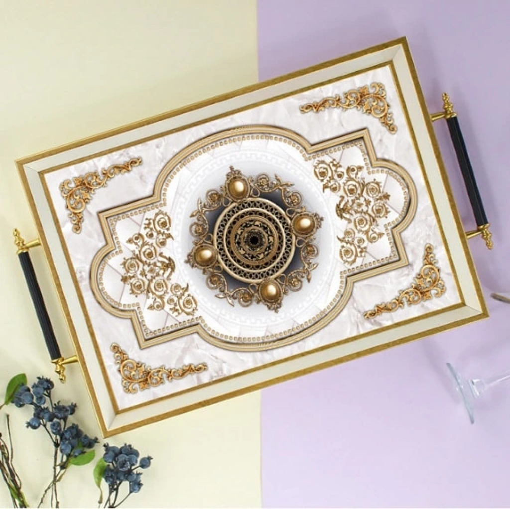 Sembol Glass 1016 Lüks Sunum Tepsi Dekoratif Tepsi Çay Tepsisi 47x30x4 Cm