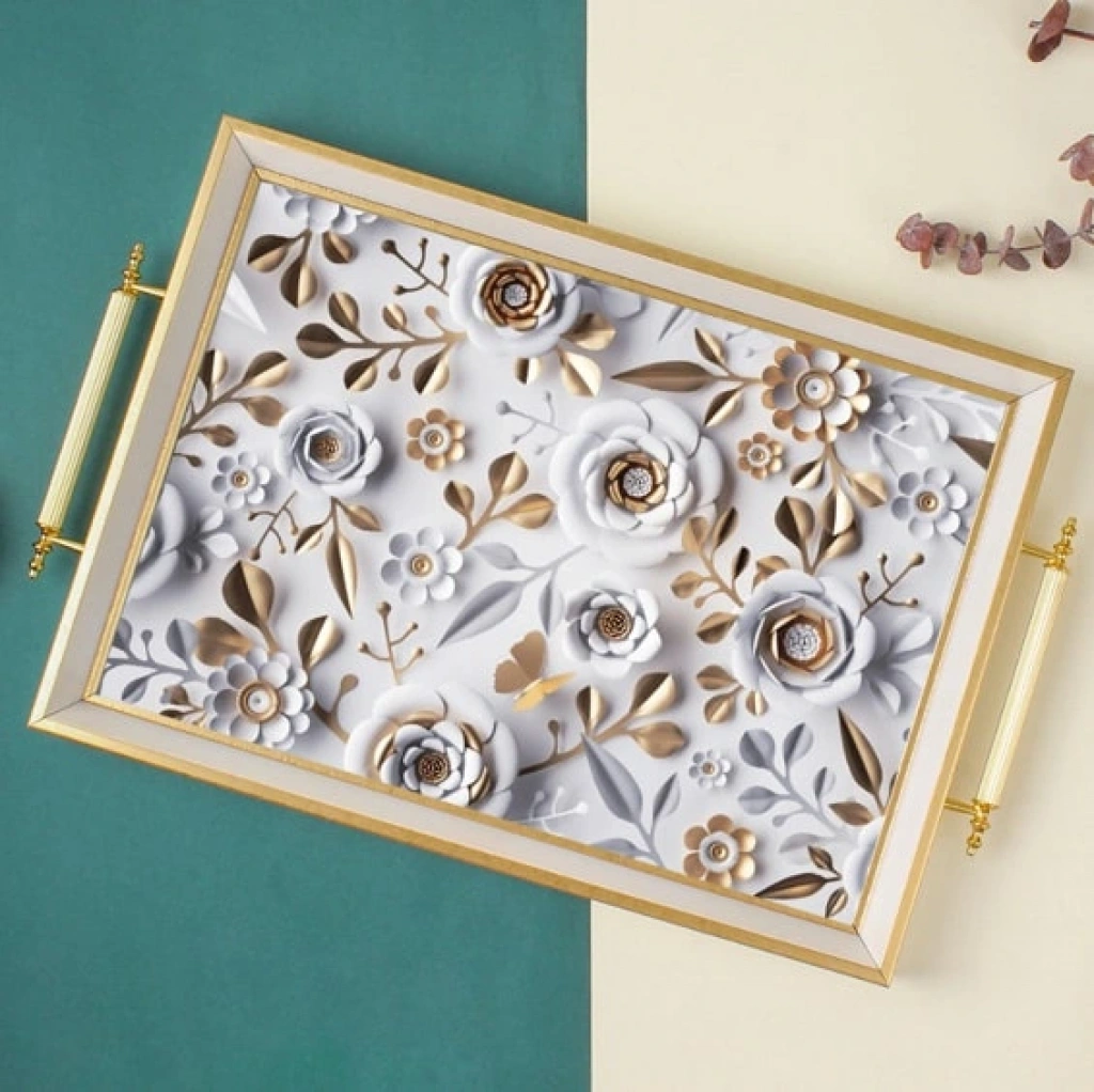 Sembol Glass 1020 Lüks Sunum Tepsi Dekoratif Tepsi Çay Tepsisi 47x30x4 Cm