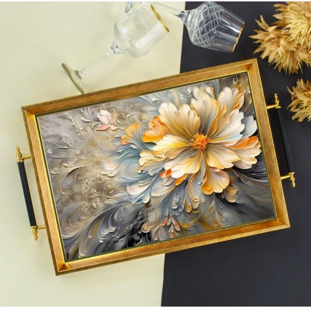 Sembol Glass 1028 Lüks Sunum Tepsi Dekoratif Tepsi Çay Tepsisi 47x30x4 Cm